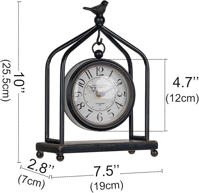 - Specifications: Measures approx.: 7.5 x 2.8 x 10 inches; Weight: 1.1lbs; Material: Iron; Farmhouse, antique, vintage, industrial, cabin, art decor, modern, and classic style mantel clock.