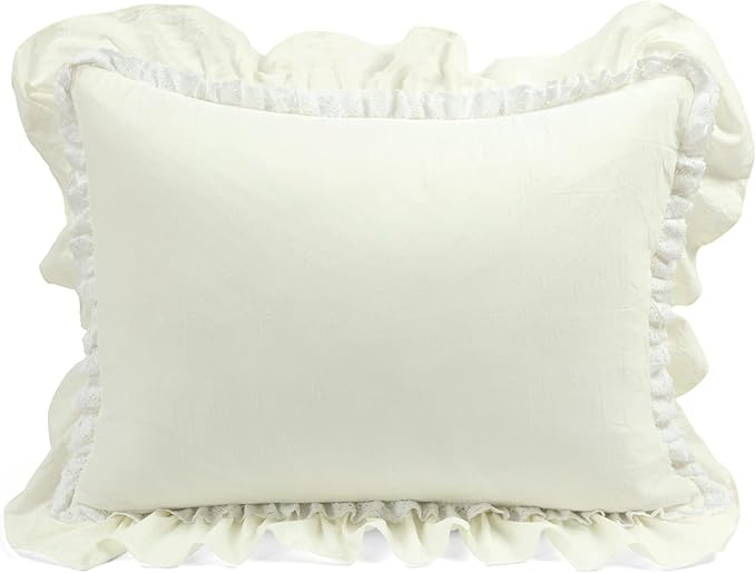 Lush Decor Ella Ruffle Lace Comforter, 2 Piece Set, Twin, Ivory - Cute Comforter - Twin Bedding Set - White Bedding - Coquette Decor - White Lace Trim - Ruffle Trim
