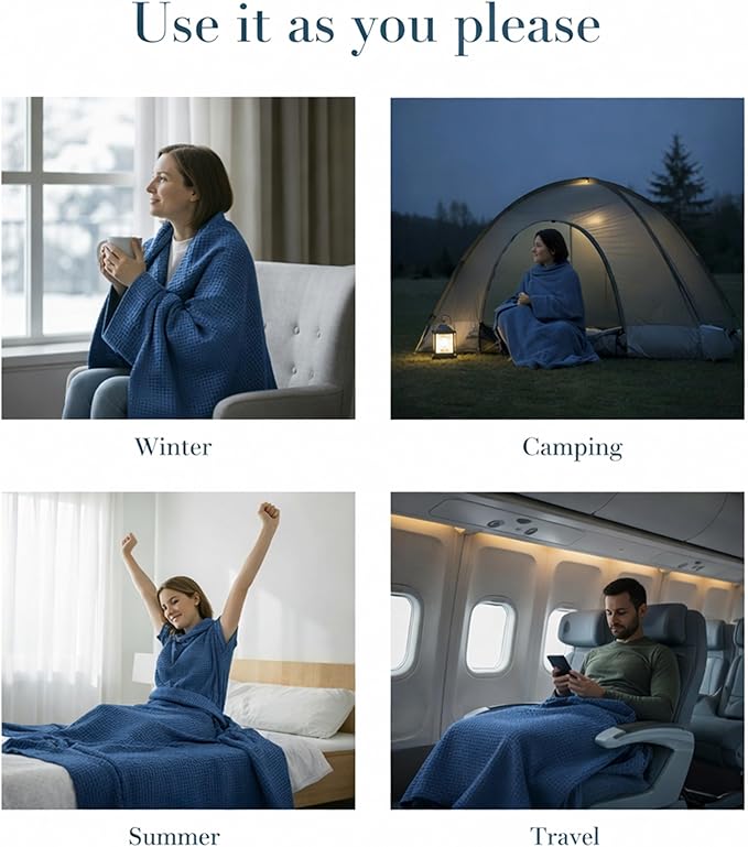 - Premium Material: Indulge in the luxury of our 100% Pre-Washed Waffle Weave cotton throw blanket as your home decor. Woven with care for exceptional softness and breathability, it's also perfect as a throw blanket for couch or sofa bed providing skin-friendly & lightweight comfort. Its breathable and moisture-absorbing properties promote a deep, comfortable sleep, preventing overheating in summer nights, making it an ideal choice for both throw blankets for bed and living room decor.