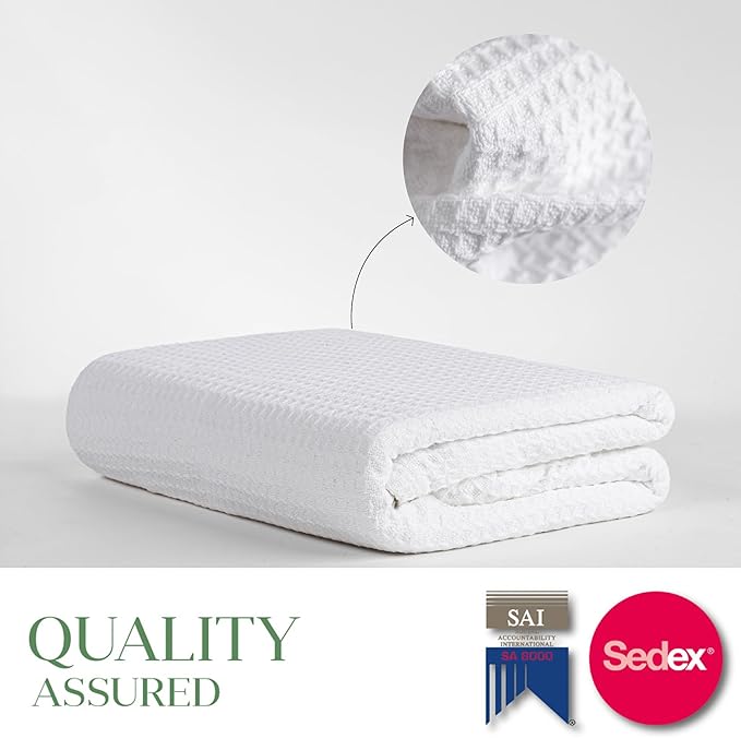 - Premium Material: Indulge in the luxury of our 100% Pre-Washed Waffle Weave cotton throw blanket as your home decor. Woven with care for exceptional softness and breathability, it's also perfect as a throw blanket for couch or sofa bed providing skin-friendly & lightweight comfort. Its breathable and moisture-absorbing properties promote a deep, comfortable sleep, preventing overheating in summer nights, making it an ideal choice for both throw blankets for bed and living room decor.