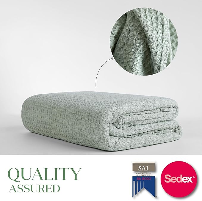 - Premium Material: Indulge in the luxury of our 100% Pre-Washed Waffle Weave cotton throw blanket as your home decor. Woven with care for exceptional softness and breathability, it's also perfect as a throw blanket for couch or sofa bed providing skin-friendly & lightweight comfort. Its breathable and moisture-absorbing properties promote a deep, comfortable sleep, preventing overheating in summer nights, making it an ideal choice for both throw blankets for bed and living room decor.