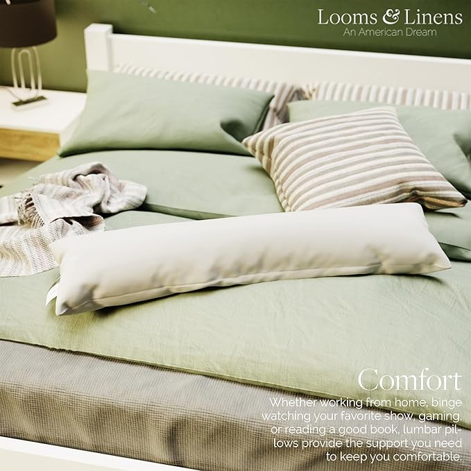 12x48 inch Boudoir Pillow by Looms and Linens with Down Alternative Lumbar Throw Pillow - USA Made Lumbar Pillow Pack of 1