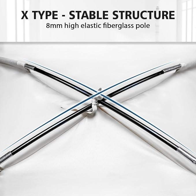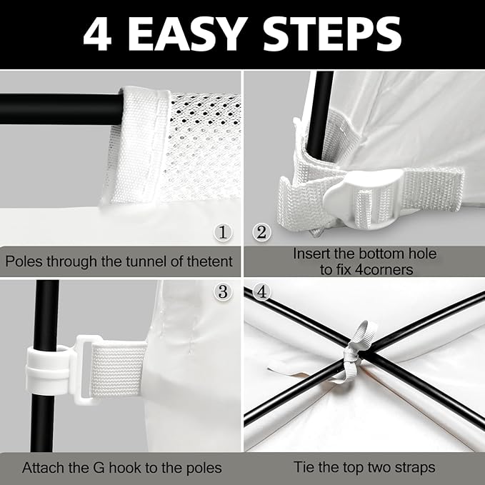 • Easy to Set Up: 2 fiberglass poles through the tunnel of the tent, insert the bottom hole to fix 4 corners, easy to set up in minutes. Size is 75"x54"x53" H, please measure your bed size before purchasing the bed tent.