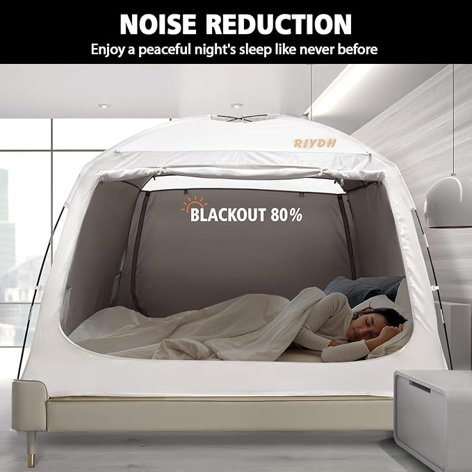 • Sleep Sanctuary: The bed tent with blackout 80% and noise reduction, the tent ensures a peaceful and uninterrupted sleep, can't see inside from the outside, perfect for creating your personal sleep oasis.