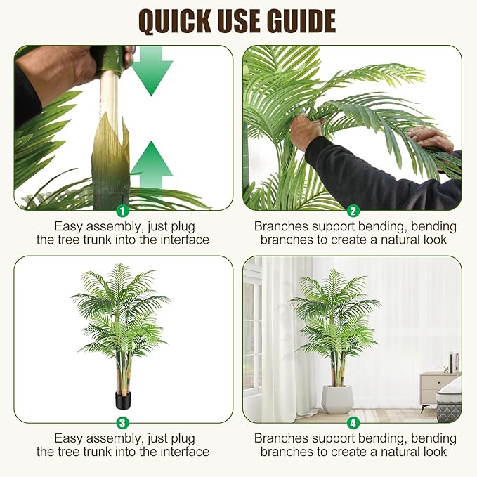 - This lifelike large artificial golden cane palm will create a sunny beach summer atmosphere wherever you place it, providing your coastal decor with an authentic look, no need for watering and pruning, looks full and fresh every day, it is the perfect decoration for indoor & outside, big house, office, outsides patio, farmhouse, porch, balcony, entrance, fireplace, doorway, stairway, green garden, yard, dining room, living room, bedroom, modern aesthetic decor, etc