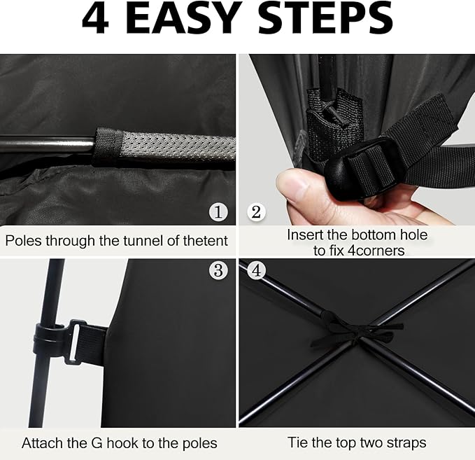 - Easy to Set Up: 2 fiberglass poles through the tunnel of the tent, insert the bottom hole to fix 4 corners, easy to set up in minutes. Size is 80"x78"x63" H, please measure your bed size before purchasing the bed tent.