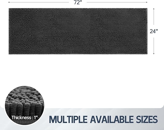 Dog Door Mat for Muddy Paws, 72" x 24" Chenille Absorbent Front Door Mat Inside, Large Runner Mud Mat for Dogs, Machine Washable Non Slip Outdoor Indoor Entrance Doormats, Grey