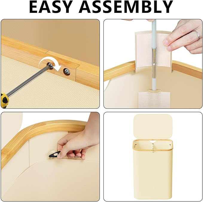 - Always Upright: Designed with 4 detachable rods, bamboo frame, and density board to keep the laundry basket stand. You will find the instructions inside the package. In less than 3 minutes, the laundry basket will be set up and maintain its shape without collapsing. Laundry basket is made of natural bamboo material and thick cationic cloth.