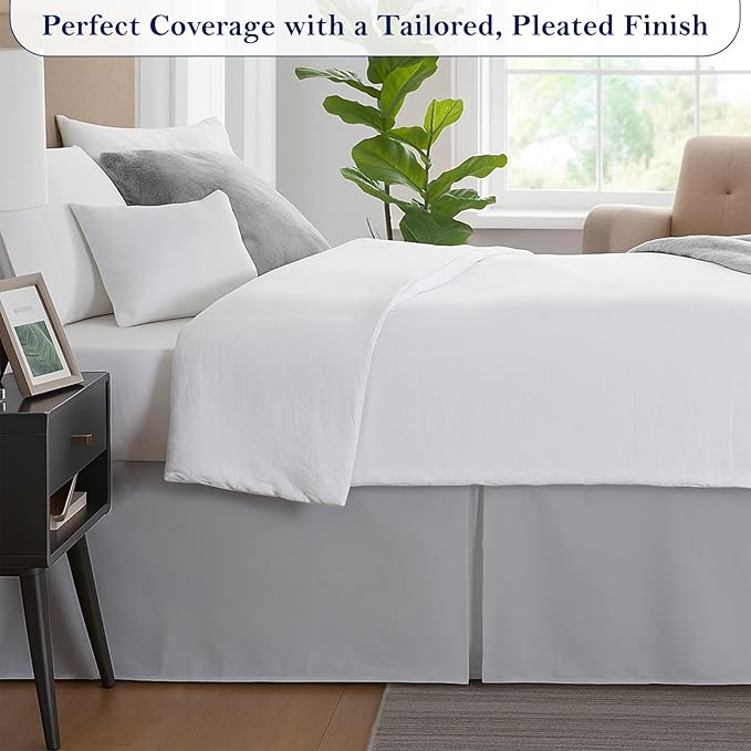 - Perfect Tailored Fit – Designed for a twin-size bed, this bed skirt offers a neat, elegant look while hiding under-bed storage. Complements your bedding and enhances overall bedroom decor.