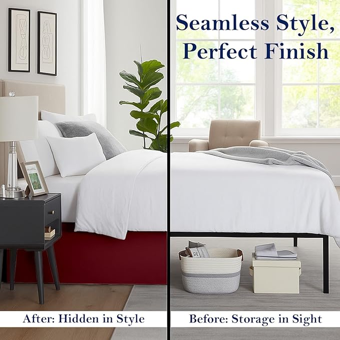- Perfect Tailored Fit – Designed for a queen-size bed, this bed skirt offers a neat, elegant look while hiding under-bed storage. Complements your bedding and enhances overall bedroom decor.