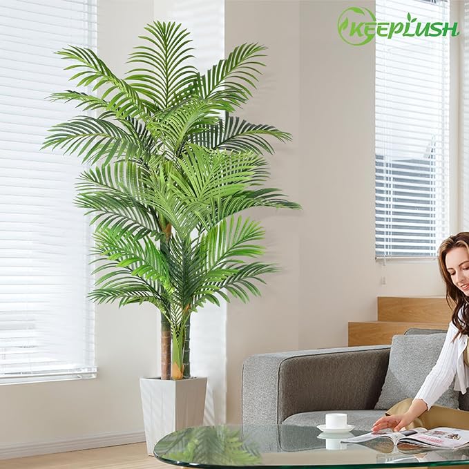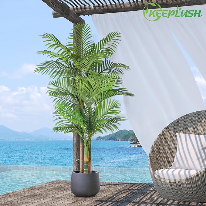 - This lifelike large artificial golden cane palm will create a sunny beach summer atmosphere wherever you place it, providing your coastal decor with an authentic look, no need for watering and pruning, looks full and fresh every day, it is the perfect decoration for indoor & outside, big house, office, outsides patio, farmhouse, porch, balcony, entrance, fireplace, doorway, stairway, green garden, yard, dining room, living room, bedroom, modern aesthetic decor, etc