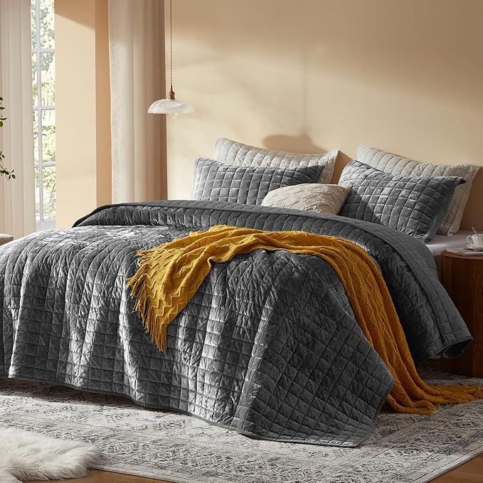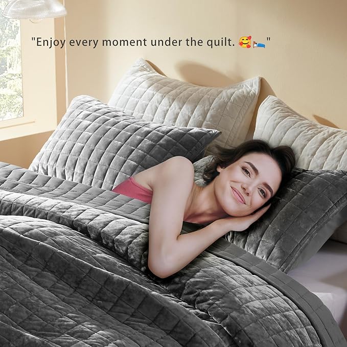 - Premium Durability: Built to last, our velvet quilted comforter set boasts meticulous channel stitching that prevents shifting and clumping. The high-quality craftsmanship ensures long-lasting durability, keeping your bedding looking and feeling as good as new for years to come.